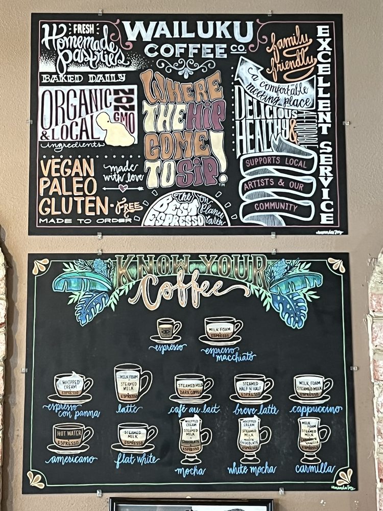 Wailuku Coffee Company, located in Wailuku, Hawaii, is a delightful spot for breakfast and brunch, specializing in sandwiches and smoothies. The menu features a variety of coffee drinks, including Americanos and cappuccinos, as well as smoothie options like the Going Bananas and Green Apple Smoothie. Customers praise the delicious breakfast burritos and egg sandwiches, with options for vegetarians and meat lovers alike. The cozy atmosphere and friendly staff make it a great place to unwind or catch up on work, with free Wi-Fi and ample seating. Whether you're sipping on an Ice Hazelnut Latte or enjoying a protein-packed smoothie, Wailuku Coffee Company offers a tasty and welcoming experience for all.